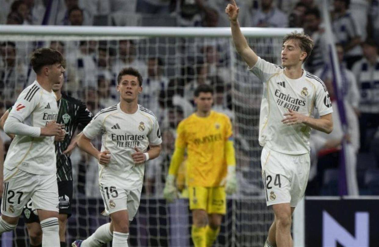 面对为保级苦苦挣扎的埃尔切,皇马从开场就展现了志在必得的气势。 虽然控球率不占优势,但进攻效率极高。比赛的僵局在第39分钟被打破,维尼修斯开出战术任意球,巴尔韦德的劲射被门将扑出,机敏的德国中卫吕迪格门前补射得手,为球队首开纪录。 进球后的皇马并未收手,仅仅5分钟后,巴尔韦德在禁区弧顶接弗兰-加西亚的传球,稍作调整后轰出一脚世界波,皮球直挂球门死角,将比分扩大为2-0。 这个进球彻底点燃了伯纳乌,也几乎杀死了比赛的悬念。
